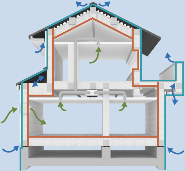 気密化は空気の移動、温度の変化をコントロールする技術です。