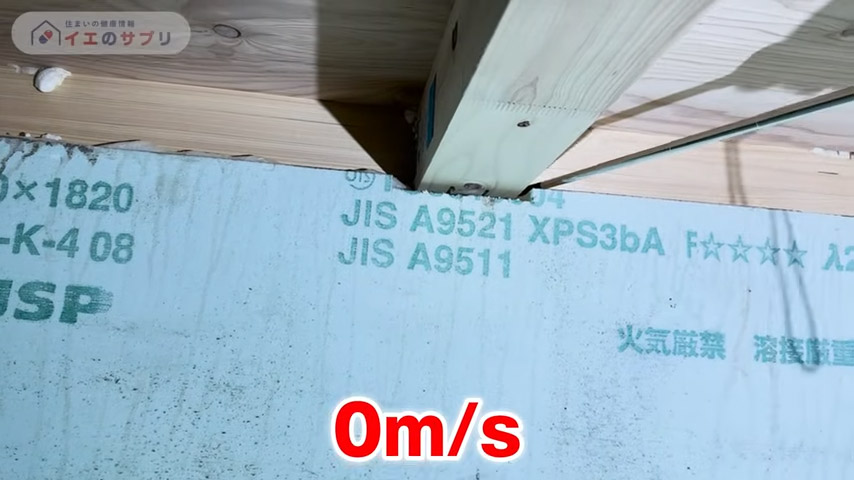 他にも基礎と土台の間にスキマがないか風速計で調べてみたところ、結果は0m/sとイエのサプリの調査ではスキマ風を発見できませんでした。