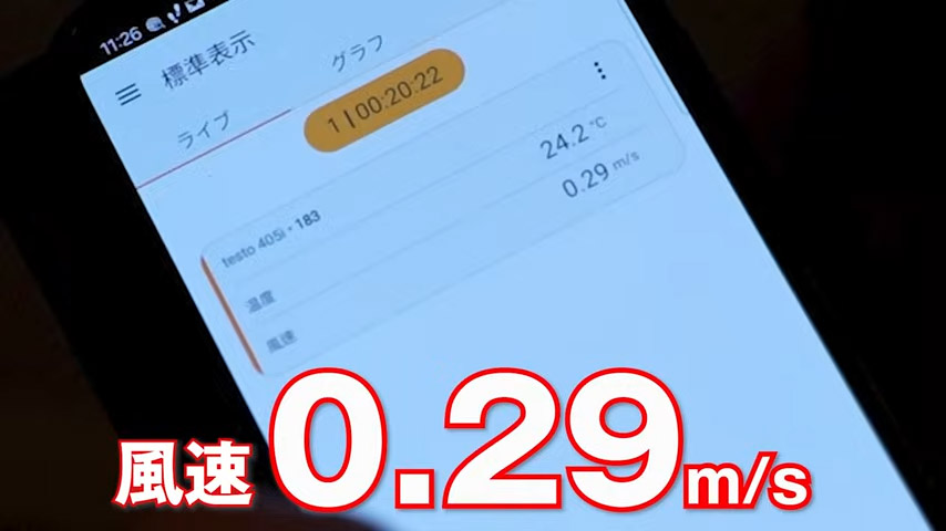 風速計で調べたところ最大の風速が0.29m/sとなっていて、スキマ風が発生していることがわかりました。