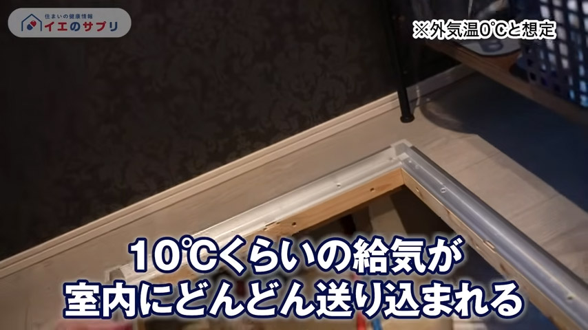 ただし、100%の熱を移せるわけではありません。そのため、排気する空気が冷たい場合、さらに冷たい空気が室内に給気されてしまいます。