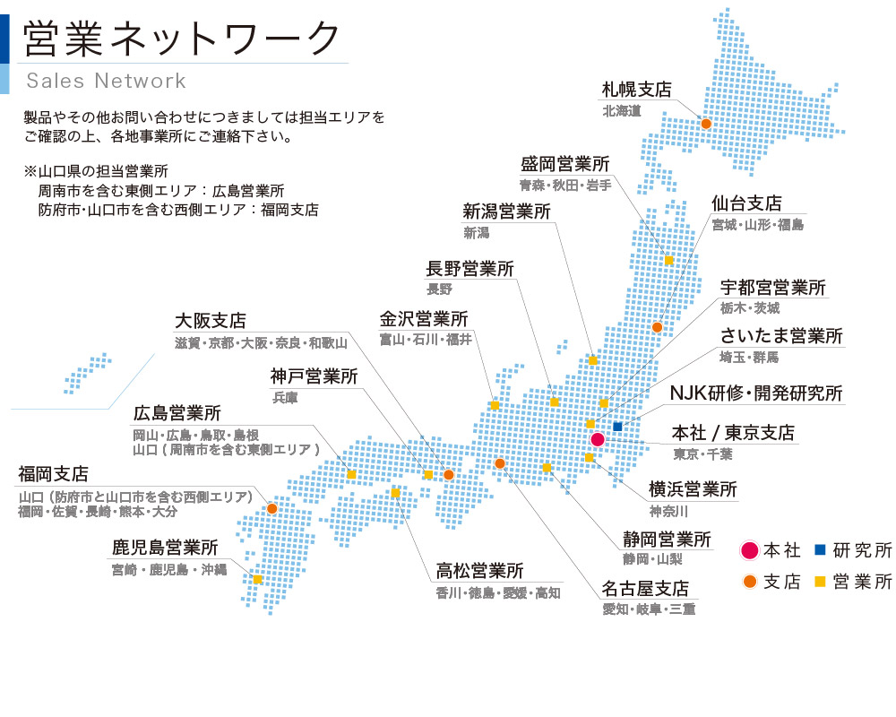 製品やその他お問い合わせは各エリアの支店・営業所までご連絡ください。