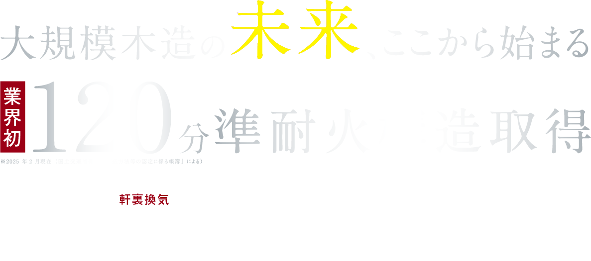 さらに大規模木造建築で求められてくるのが「耐火性能」です。地域や建物の規模などの条件によって求められる耐火の時間が変わってきますので、それに適した性能が求められます。