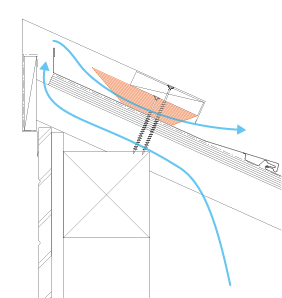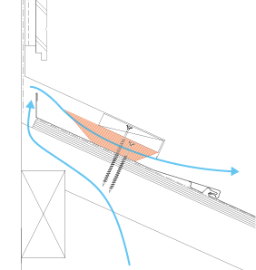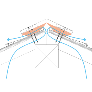 暑い空気がたまり易い住宅上部の棟に設置し、小屋裏の湿気や熱を効率良く排出する棟換気材です。様々な屋根材に対応できます。