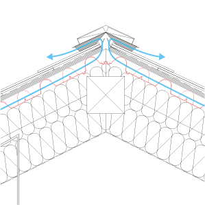 高い防風性能搭載 繊維系断熱材専用の屋根通気層換気材