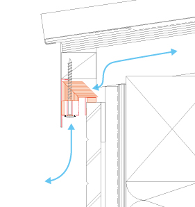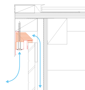 狭小地や軒の出がない軒ゼロ住宅に最適な準防火地域対応の軒裏換気材です。「大きな住宅には従来品のep45軒ゼロSでは小さすぎる、建物によっては外周部すべてに設置しても必要な換気量を確保できない」という声にお応えして、従来品ep45 軒ゼロS の半分の数で必要な換気量を確保できるよう開発しました。製品の長さも1,820 ㎜になったことで、施工の手間が軽減できます。
