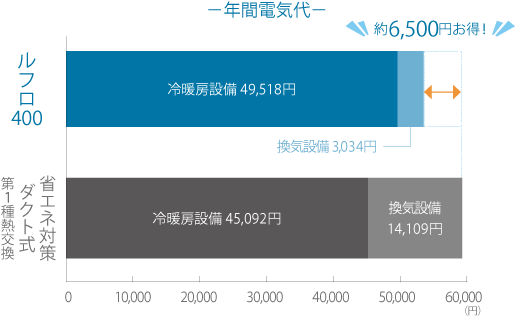 本体の消費電力が少ないだけでなく、設置費用や冷暖房費などトータルで比べてもお得です。