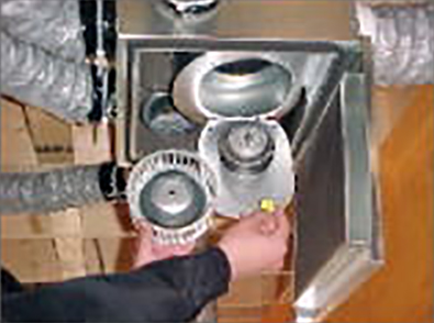 羽根センターのナットを外して羽根を取外し、羽根についた埃を取除きます。