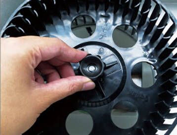 - 清掃後の羽根を取付ける際は、固定ナットを確実に締め付けて下さい。ガタツキが生じるとファンの故障の原因になります。