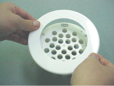 オリフィス本体の汚れを乾いた布等で拭いて下さい。汚れがひどい場合は、固く絞った布等で水ぶきしてく下さい。(汚れた布等が天井や壁面を汚すことがありますのでご注意下さい。また、天井など高所での作業にはしっかりと足場を確保し、転落しないよう十分にご注意下さい。)