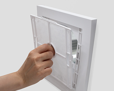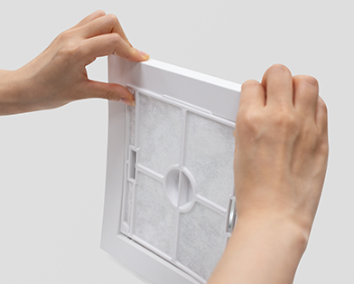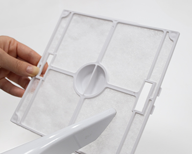 2. フィルター中央の突起を指でつまみ、手前に引いて外して下さい